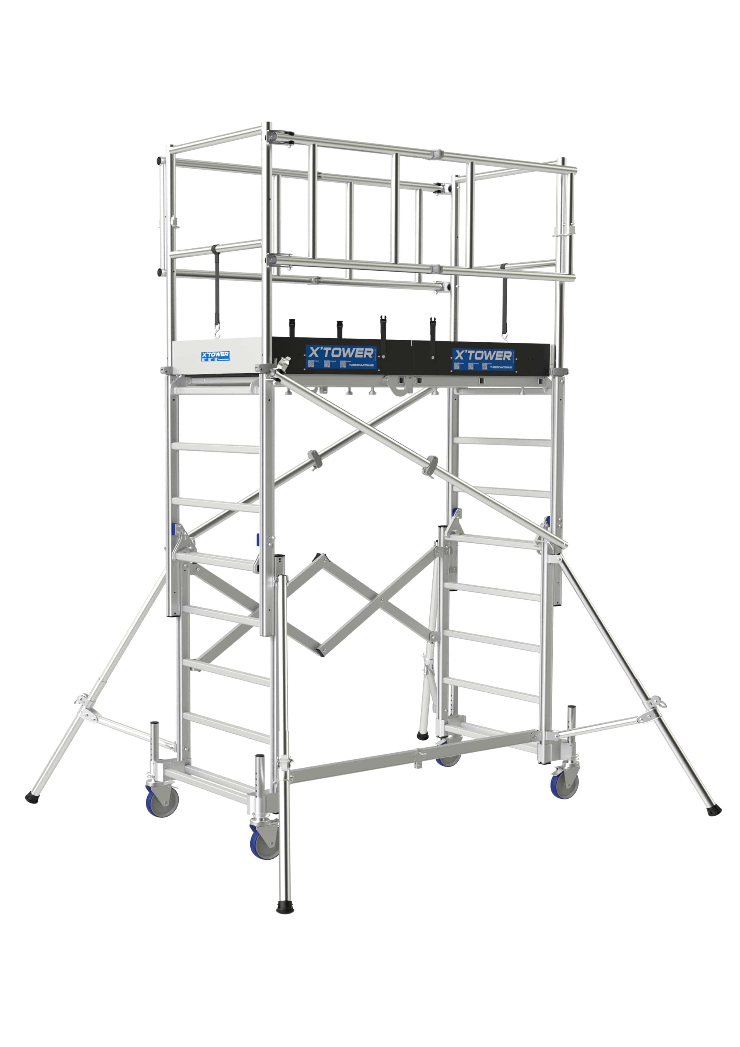 • 4 stabilisateurs repliables individuellement à réglage millimétrique.