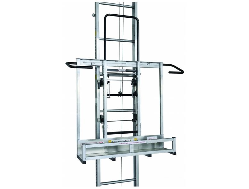 • Treuil facilement démontable de l’échelle de base et équipé de roues pour la manutention.